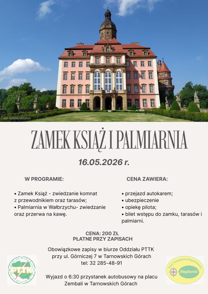 Obowiązkowe zapisy prowadzi Biuro Oddziału PTTK Ziemi Tarnogórskiej przy ul. Górniczej 7.